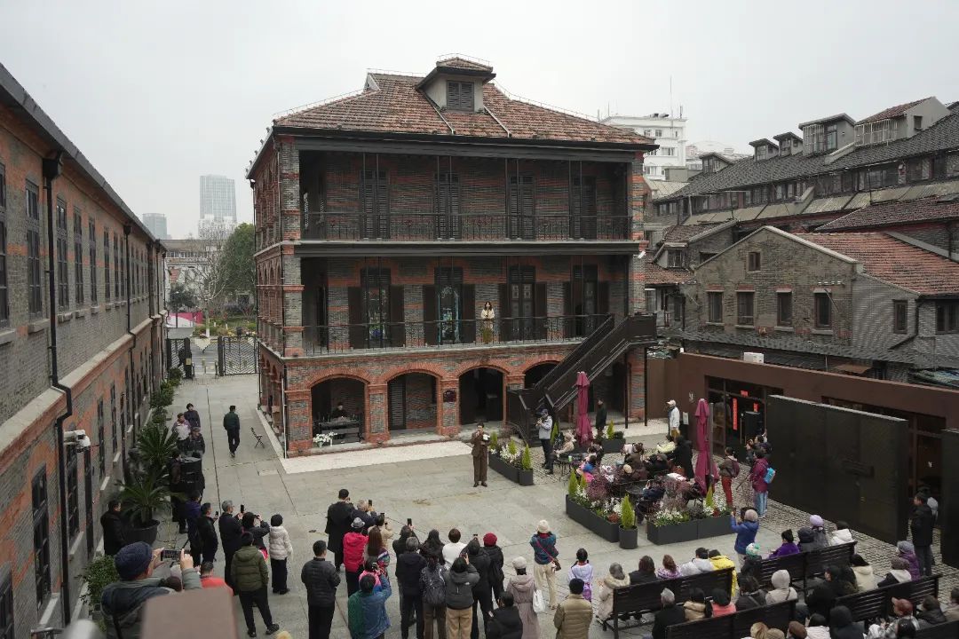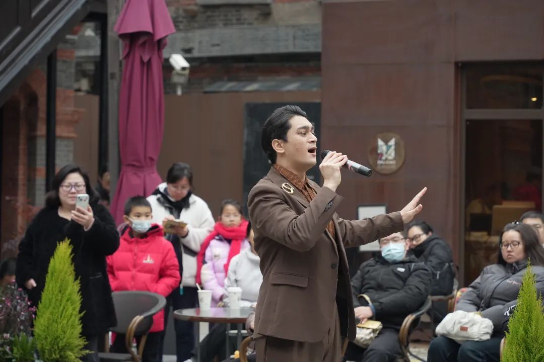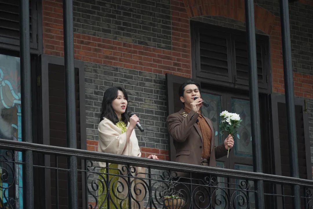 摩西会堂是栋青砖墙面、红砖斜尖顶的三层外廊式建筑。新春佳节,二楼外廊成了一个临时的表演舞台,表演者在这里为游客们演唱脍炙人口的海派歌曲。在这一刻,复古歌曲仿佛与百年老建筑融合在了一起。工作人员介绍,本次活动的主题曲是陈歌辛创作的经典金曲《海燕》,这首歌悠扬动人。除此之前还有《梦中人》《苏州河边》《海燕》《凤凰于飞》等众多海派金曲,相信这些歌曲也承载了很多人的青春记忆。