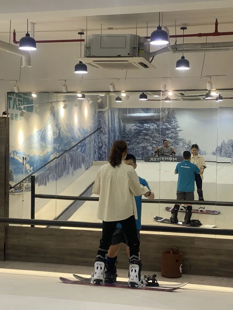 室内模拟机滑雪是一种性价比较高的滑雪入门方式。场馆设有初级、进阶两台进口滑雪机,学员可以通过滑雪机前装置的大玻璃观察滑雪动作,在教练指导下及时纠正错误姿势,练习更高效、更有针对性。