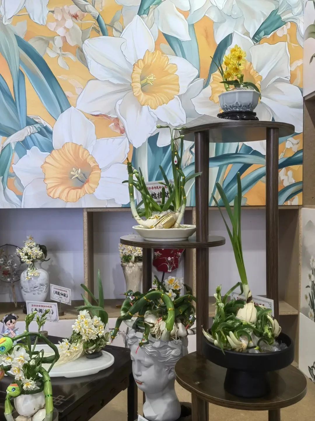 近日,在上海共青森林公园的2025新春市民水仙花展上,来自市民水仙雕刻大师之手的“写实派、禅意派、豪放派”三种不同风格的艺术作品激情碰撞,作品精致唯美,独具风格,结合充满雅韵的容器、饰品等,让市民游客尽情领略水仙雕刻深厚而又雅致的文化魅力。