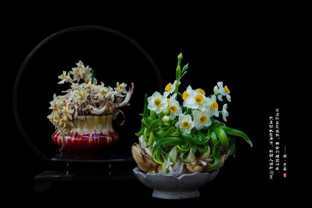 沪上“禅意”水仙雕刻大师张瑜擅长通过独特的雕刻手法与艺术装饰,展现水仙中蕴含的自然与人文哲学。正如带来的作品《枯木逢春》,一团开败了的的残花与生机勃勃的新花,一前一后,一死一生,形成强烈视觉反差,不仅极具艺术观赏性,更表达了生命轮回不息的禅意,尽显水仙素雅芬芳之神韵,将禅意与水仙雕刻艺术完美融合。