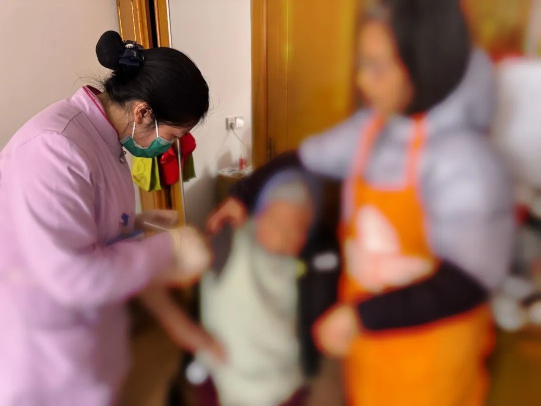 一到王阿婆家里,她先为阿婆进行全面地身体检查,仔细询问阿婆身体症状,又查看了甲流康复后的恢复情况,确认其目前身体状况基本稳定,但免疫力确实较为低下,注射胸腺五肽针剂是一个可行的办法。她耐心地向家属讲解注射后的注意事项和可能出现的反应,家医助理为王阿婆注射第一针胸腺五肽。