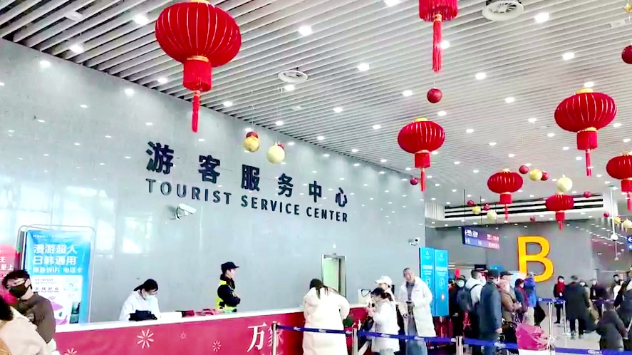 为了让邮轮旅客在海上也能感受到浓浓的年味,上海吴淞口国际邮轮港精心打造了港区氛围。客运大楼和引桥布置了以“中国红”为主色调的蛇年主题景观,挂满了中国结、红灯笼等传统装饰物,营造出欢乐祥和的节日气氛。游客们在登船前就能感受到春节的喜庆氛围,仿佛已经置身于一个充满年味的海上世界。