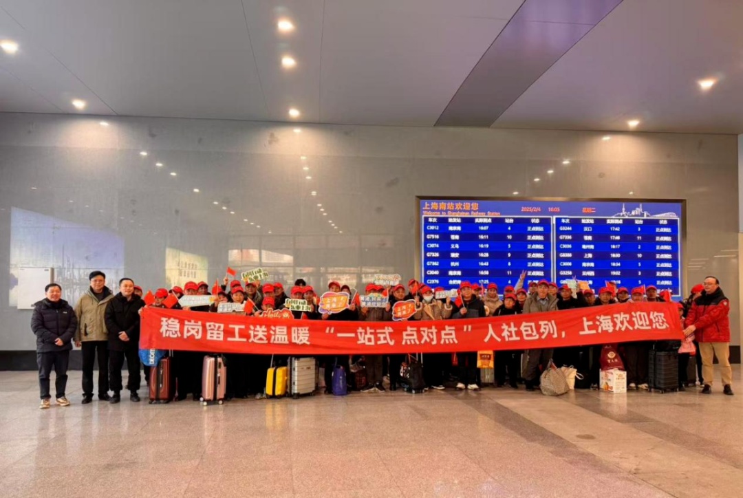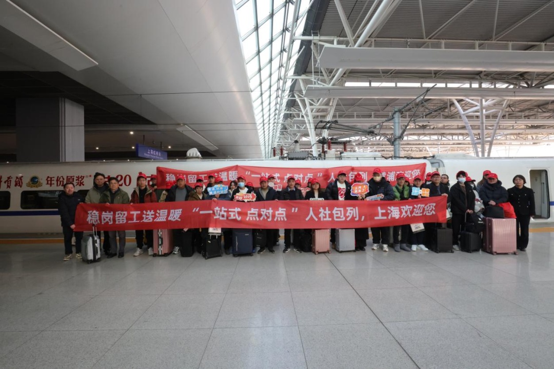 “春风专列”到达上海后,市、区人社部门为来沪务工人员送上慰问礼品和政策服务包,并送上返回公司的大巴,让每一位返岗人员切实感受到这座城市的温暖,进一步增强他们在上海安心工作、扎根发展的信心。