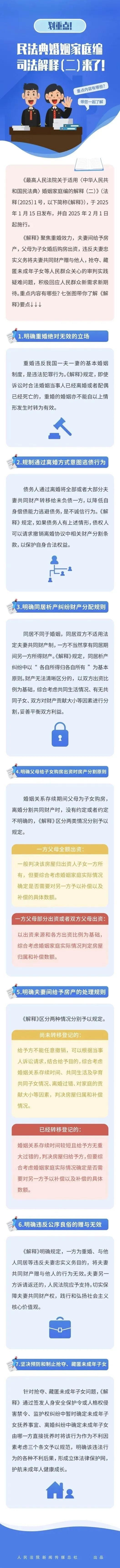 《最高人民法院关于适用〈中华人民共和国民法典〉婚姻家庭编的解释(二)》将自2025年2月1日起施行。