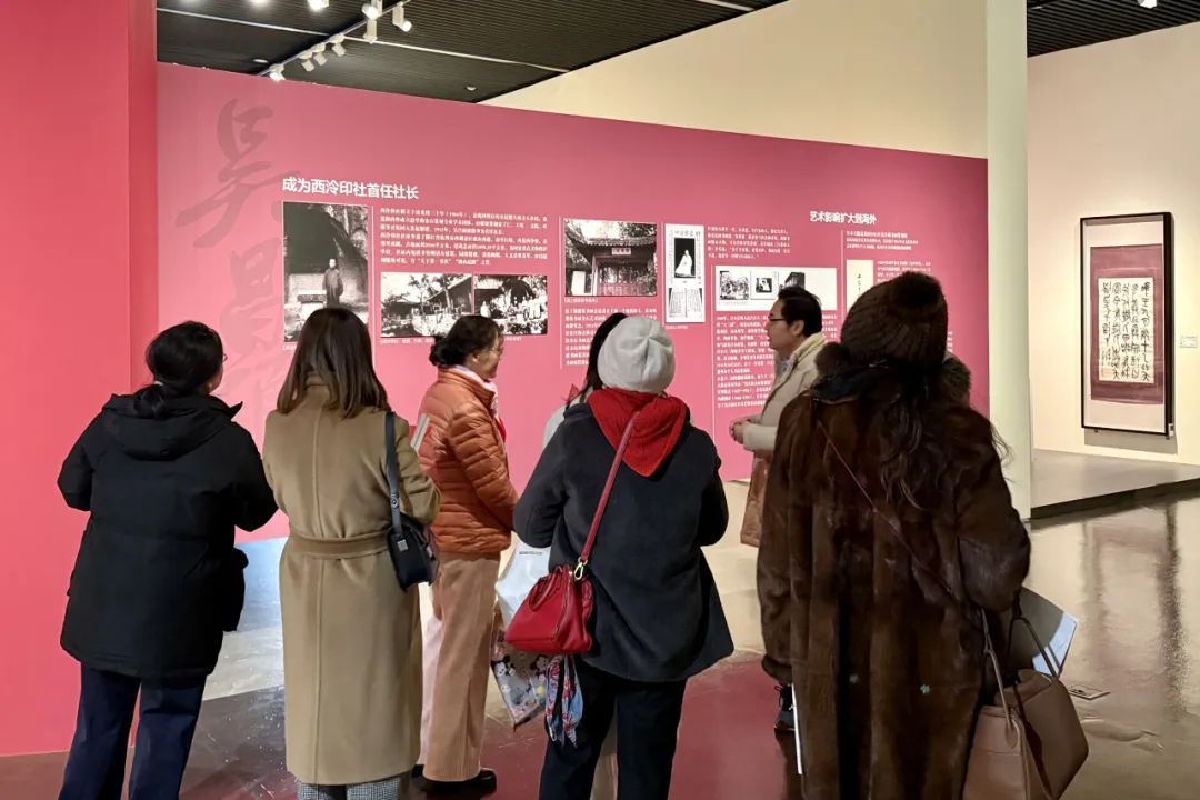 除了重磅展品,中华艺术宫(上海美术馆)还在新春期间围绕此次大展推出了一系列公教活动,多维度为市民游客加深看展体验。每日一场的常态化导赏带领观众走进吴昌硕的艺术世界;深入浅出的讲解,让观众们从吴昌硕的笔墨中领略到海派艺术的独特魅力;名家讲座“海上明月——谈一代宗师吴昌硕”,由吴昌硕曾孙吴越先生主讲,通过分享祖父辈口中的点滴回忆,深情讲述了吴昌硕的艺术人生;华师大副教授汪涤的专题讲座“吴昌硕与海上画派的鼎盛时代”则细致解读吴昌硕的艺术成就,及其对海上画派产生的深远影响,帮助观众梳理出海上画派的发展脉络。