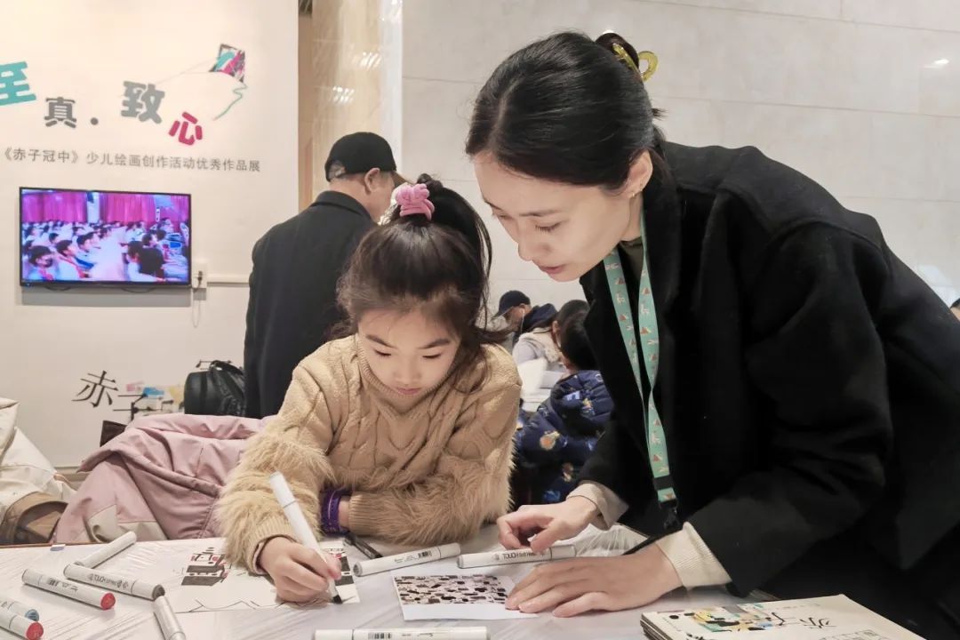 此外,结合41米层艺术教育长廊的“我心中的敦煌”绘画作品展、“至真·致心”——致敬大师·《赤子冠中》少儿绘画创作活动优秀作品展,初五的两场创意活动灵感四射。“敦煌绮梦”水墨数字绘画共创活动将传统与现代完美结合,观众们在数字绘画的世界里,用现代科技手段创作出了独一无二的敦煌艺术作品。《赤子冠中》美育童书共读共绘活动则让孩子们在阅读中汲取灵感,用画笔描绘出自己心中的灰、白、黑世界,充满了童趣与想象力。初七的 “我心中的敦煌”亲子半日营,大人与孩子们一起学习敦煌文化并尝试艺术创作,度过了温馨快乐的亲子时光。