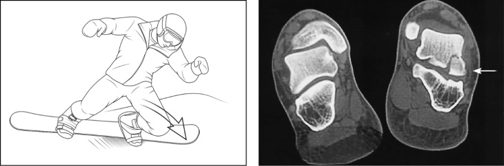 图二、典型的滑雪板骨折机制——CT:距骨骨折