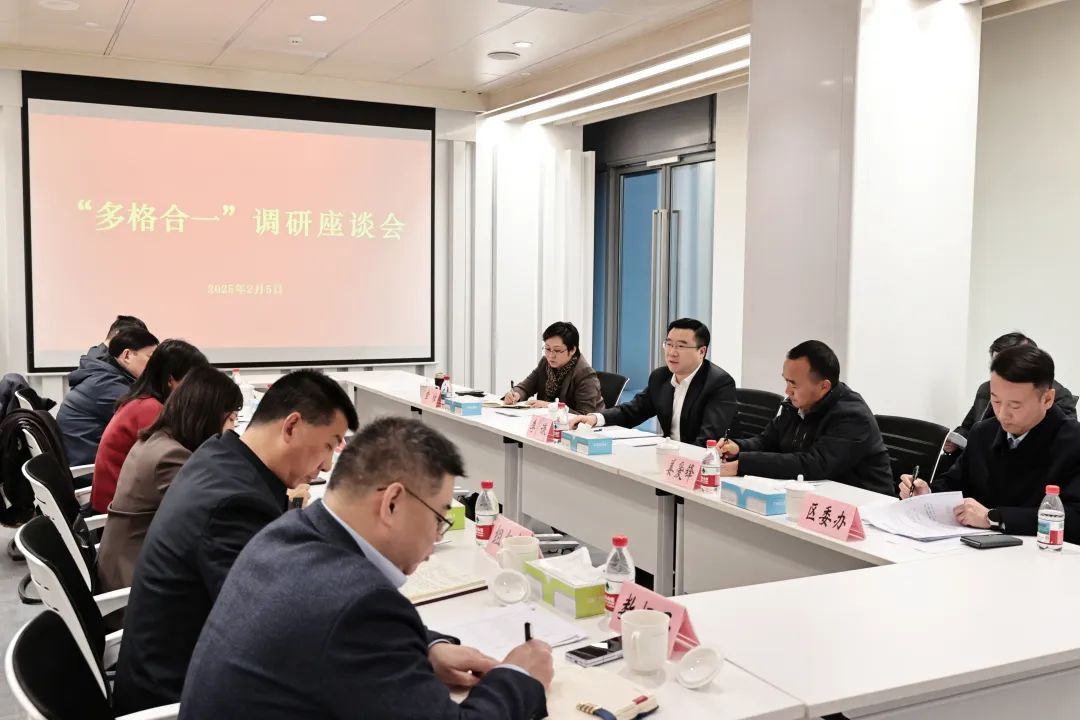 2月5日下午,区委书记李谦赴北外滩街道城运中心调研“多格合一”推进情况,实地察看城管社区工作室,详细了解北外滩街道网格划分、片区工作站组织架构、工作流程、联动机制等情况,并主持召开“多格合一”调研座谈会,听取相关情况汇报。