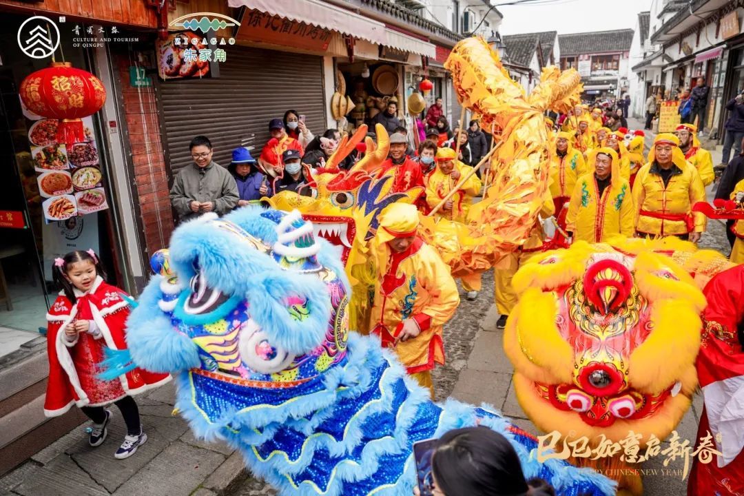 朱家角古镇的“角里过大年”活动带来了喜乐角里闹新年、舞龙丝竹巡演、瑞狮采青吐福等丰富活动,还有“财神”巡游送福!“蛇”尖上的非遗文创市集更是让人目不暇接!假日8天,古镇总共接待了27.95万人次的游客,厉害吧?!