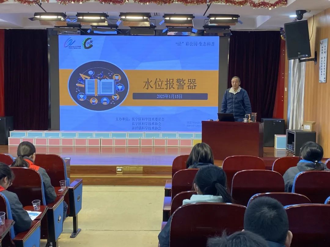 寒假期间,新泾镇将一堂科普讲座《太阳能下雨警报装置》带进了新泾中学,用现场教学与视频转播教学相结合的形式为同学们带来了一场有趣的科学体验。活动现场,来自上海市老科学技术工作者协会的史正华老师通过实物展示,生动详细地讲解了太阳能下雨警报装置的工作原理和组装技巧。