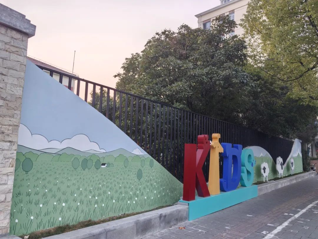 在虹桥路与哈密路交叉口,一组蓝色的梅花鹿剪影和“Hi! Hami Road”的标识开启了行人对哈密路的全新畅想。顺着哈密路向北走,大草原上的绵羊、伸长脖子的长颈鹿……幼儿园围墙的立体动物文字绘同样别有趣味。