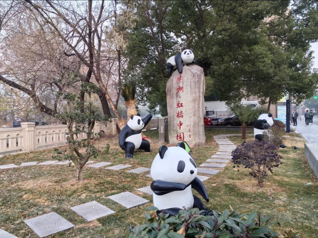 在虹桥中园的街角绿地,一群憨态可掬的“大熊猫”十分吸睛。有的慵懒地坐着,双手捧着竹子,正吃得津津有味;有的俏皮地站立着,双只圆耳朵竖着,似乎在倾听周围的动静;还有的趴在地上,憨态尽显,像是在享受阳光的抚摸……六只“大熊猫”形态各异、别具一格。
