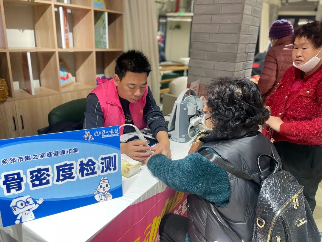 本次市集的一大亮点是一系列免费健康轻体验项目。血糖、血压、动脉硬化和骨密度等检测摊位一字排开,吸引了众多居民前来参与。居民们纷纷表示,这些检测项目让他们更加了解自己的身体状况,对潜在的健康问题能够做到早发现、早干预、早治疗。一位参与检测的居民说:“这样的活动真好,不用去医院就能了解自己的身体状况,太方便了!”