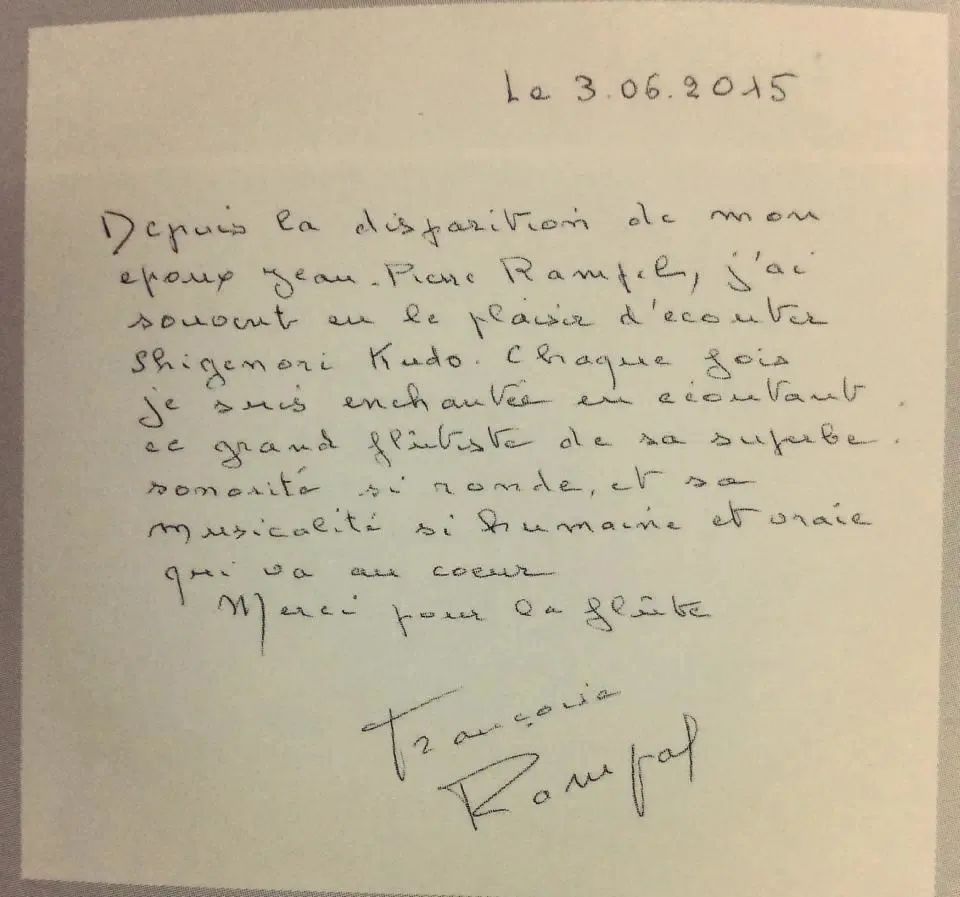 弗朗索瓦·朗帕尔致工藤重典的亲笔贺信