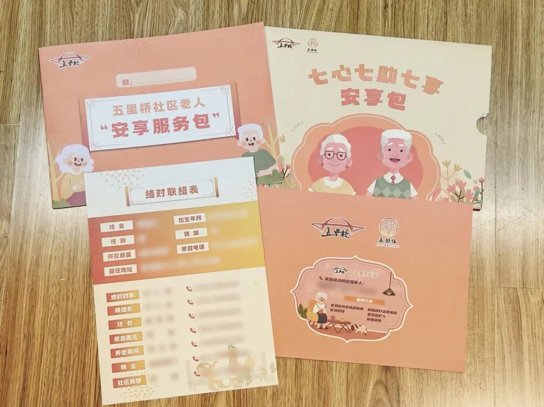 “安享包”内包含一张一对一匹配的“五星级”个性化服务清单、一张“四星级”服务菜单、一张结对联络表、一个应急服务冰箱贴和一张标注有各类养老设施点位的周边服务地图。根据长者服务需求,街道对“安享包”内容进行了进一步细分,推出“照护版”、“出行版”“家政版”三大定制服务包,最大程度解决长者因行动不便带来的衍生问题,实现个性化“政策找人”。