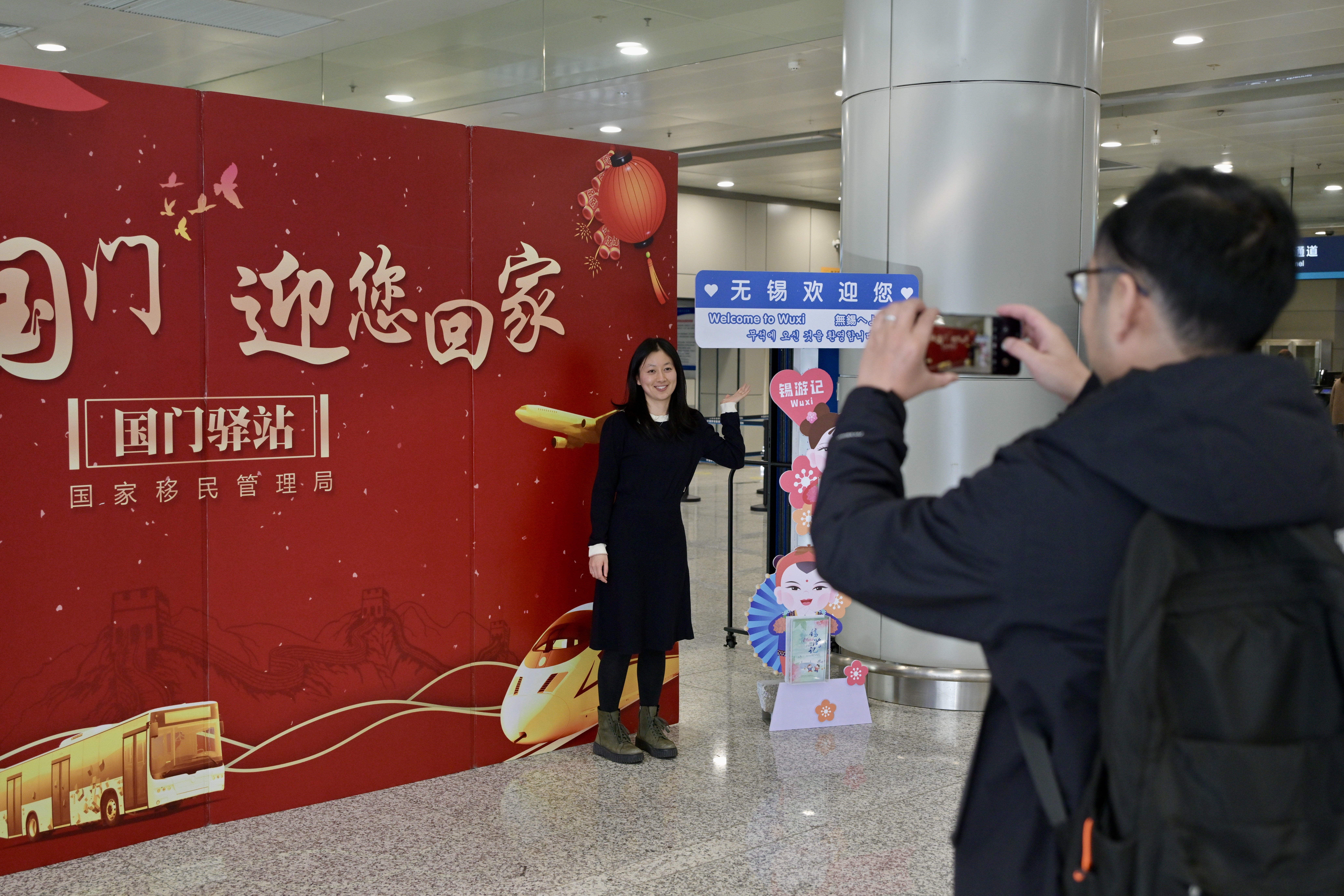 无锡硕放机场作为千万级客流量的重要枢纽,春节期间洋溢着喜庆气氛。正月初五,记者在出入境口岸现场看到,“温暖国门,迎您回家”展板吸引了不少旅客打卡拍照。“上午11时出境通道队伍排起长龙,下午1时入境大厅便迎来返程高峰,这种‘双高峰’态势持续至正月初十。”无锡边检民警说。据无锡出入境边防检查站最新数据显示,春节期间,从无锡口岸入出境外国人超1800人次,同比增长56.7%,入境目的多为旅游观光、探亲访友。