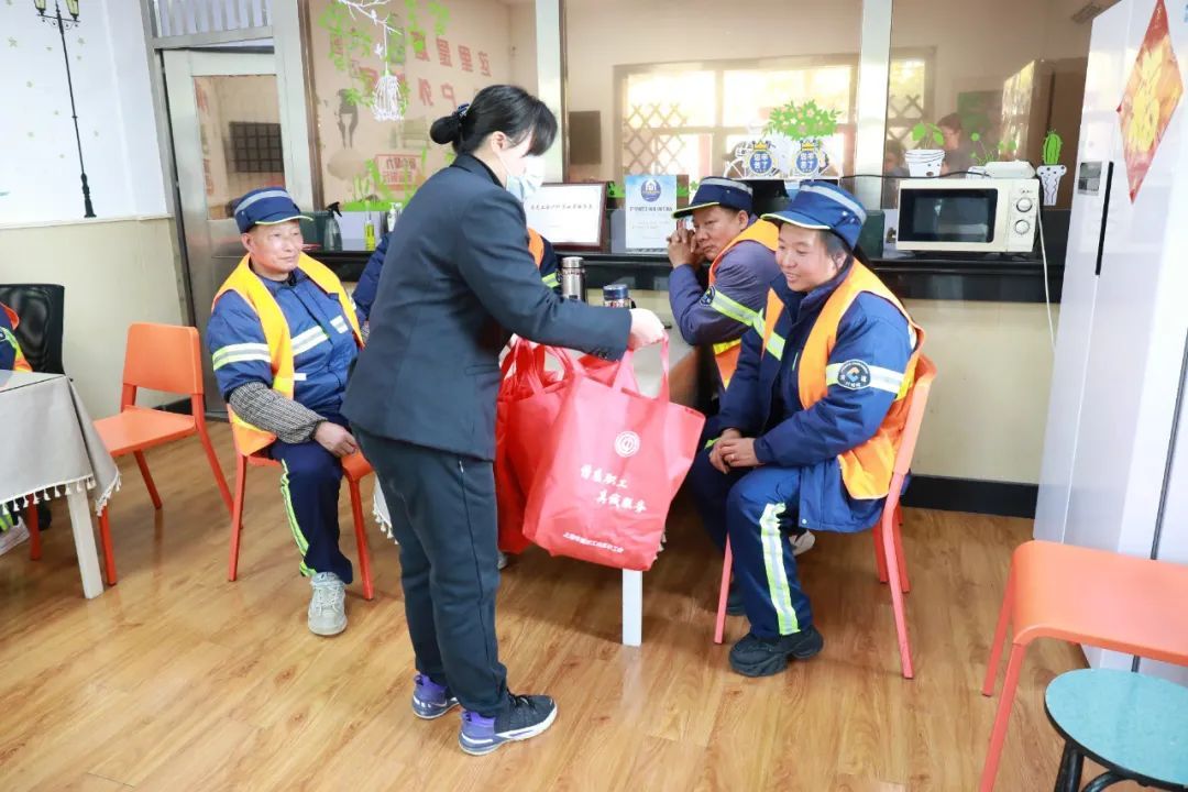为进一步向新业态人群送温暖,以实际行动表达对户外职工人群的关心,嘉定工业区总工会向嘉定工业区社区事务受理服务中心(南区)户外职工爱心接力站派送暖冬热饮,包含维生素C泡腾片、各色茶包等。同时送出“温暖礼包”,其中包含帽子、手套等防寒保暖物资,叮嘱前来的环卫工人在户外工作时要注意做好保暖防护。