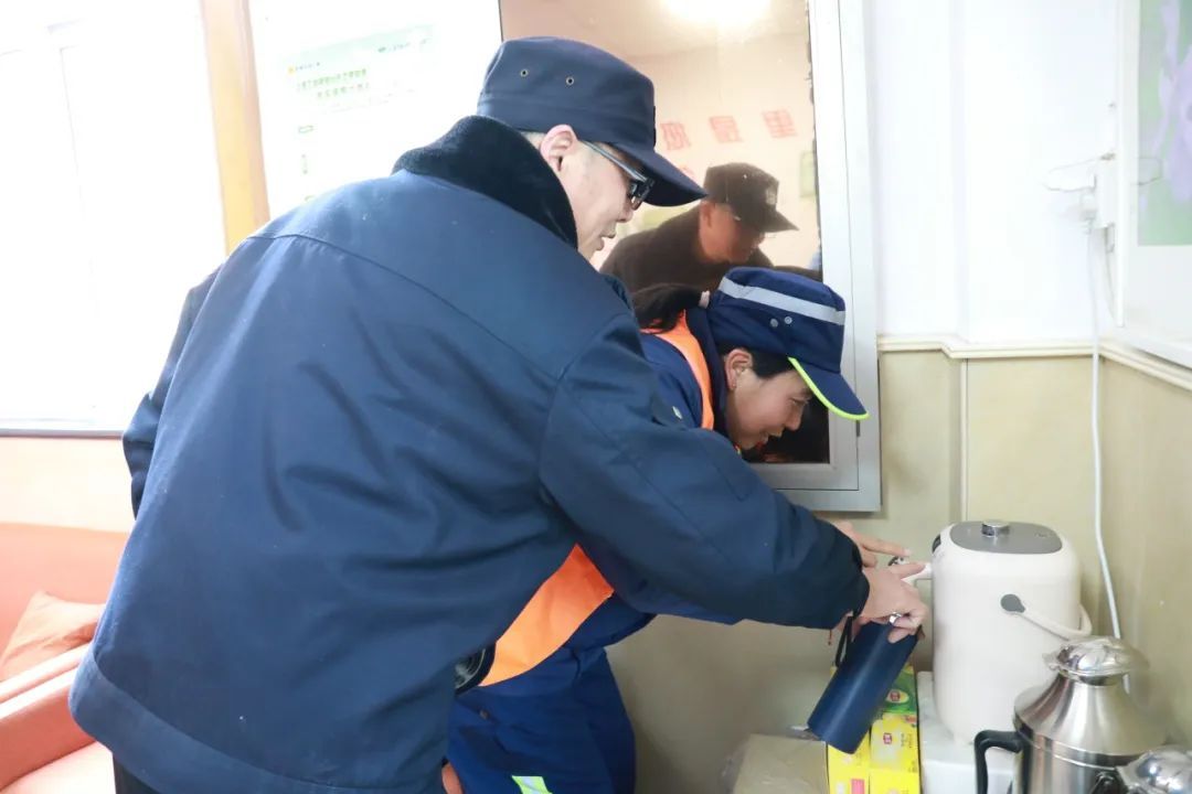 “今天室外天气很冷,能有个地方歇歇脚,喝口热茶,真的很感谢!”叶城环卫职工杨永德告诉小嘉,“这里开着空调,坐会儿就挺暖和。”
