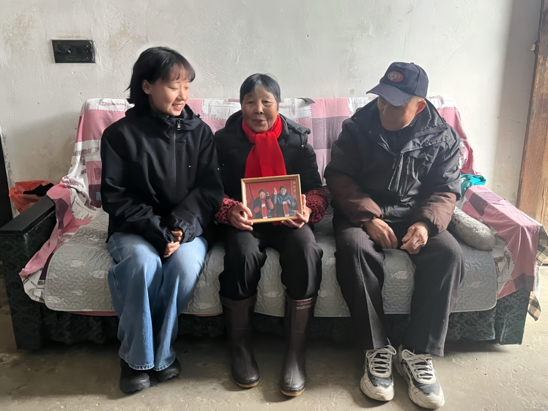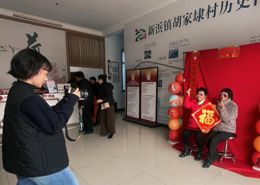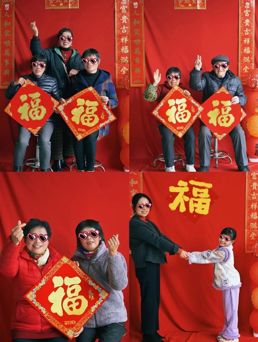 “咔嚓、咔嚓……”,在喜庆的红色背景布装饰前,一位位身穿靓丽衣服,手拿“福”字的村民在选调生张乐然的指导下摆姿势、露笑容。伴着清脆的快门声,一张张笑脸出现在镜头中,幸福满溢的全家福新鲜出炉。此起彼伏的笑声,欢乐氛围瞬间拉满,在胡家埭村新时代文明实践站呈现一派温馨、喜庆的新春氛围,幸福也在这一刻具象化。