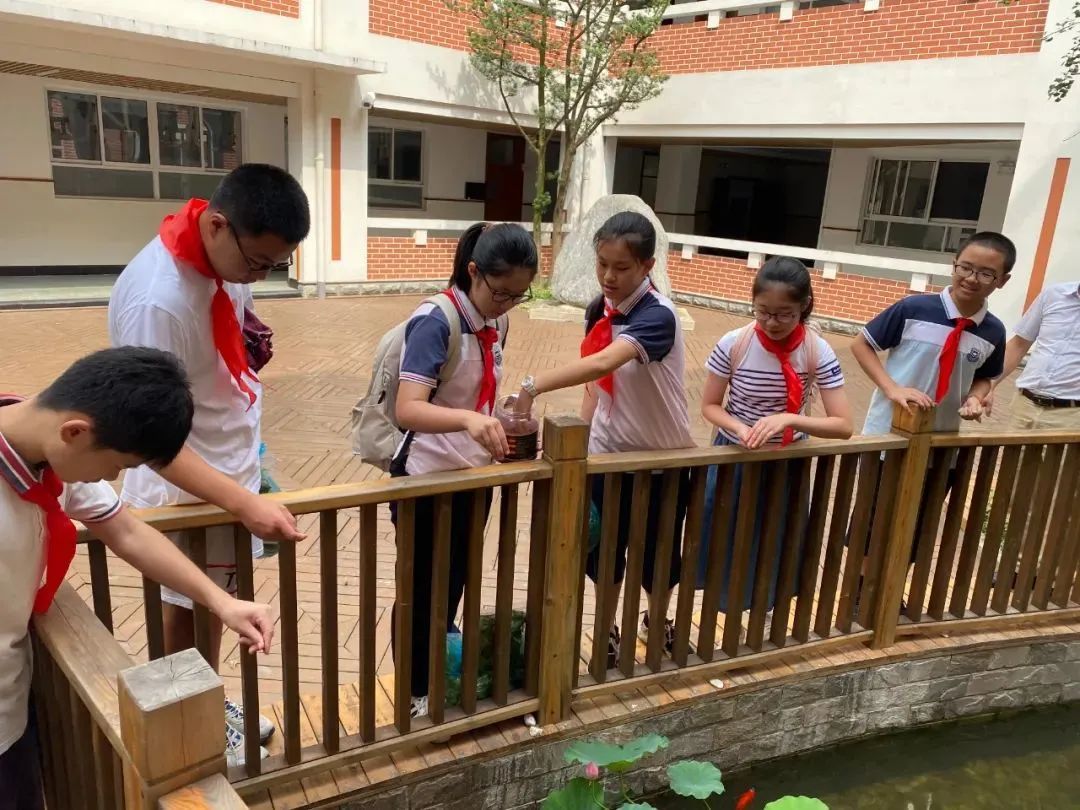 2019年,乘着上海市百所初中强校工程的东风,学校对校舍进行了修缮,在教学楼中庭花园里挖了一个月牙状、面积80平方米的人工湖。然而放养在湖里的鱼儿总是接二连三“离奇死亡”,前前后后“送走”了100多条鱼,这个问题困扰了师生很久。