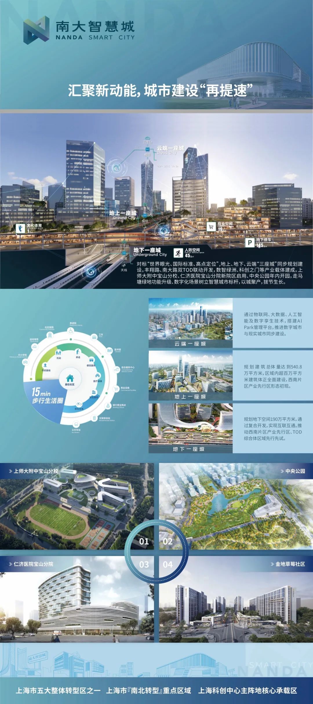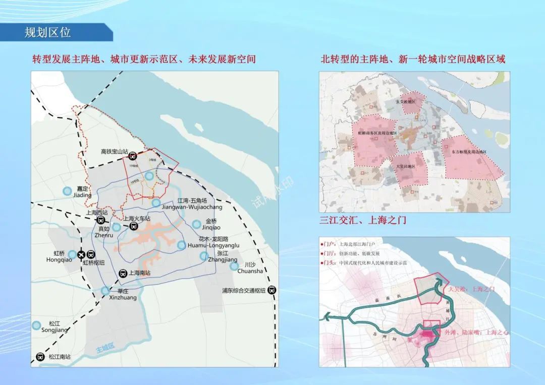 吴淞创新城、南大智慧城、滨江邮轮旅游带是宝山区转型发展的重要空间,也是宝山建设上海科创中心主阵地的核心承载区、国际大都市主城区的品质代表、全市绿色低碳转型样板区的集中示范。