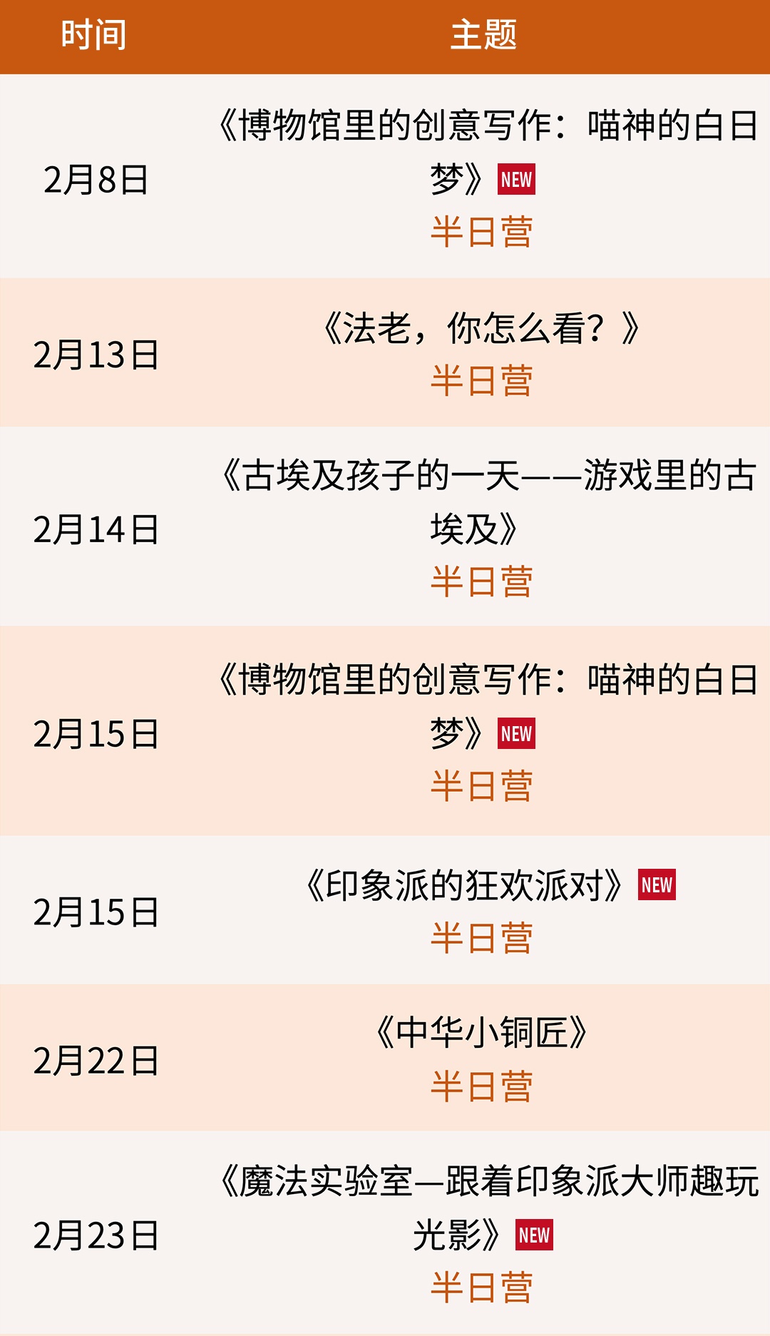 印象·派对:POLA美术馆藏印象派艺术大展主题营学活动、给中学生的中国书画通史、首饰设计初体验、小小讲解员、我在上博“修文物”、博物馆里的创意写作课……一起在博物馆里感受传统与现代的交融,收获知识与欢乐的双重馈赠,为新的一年注入满满的文化力量!