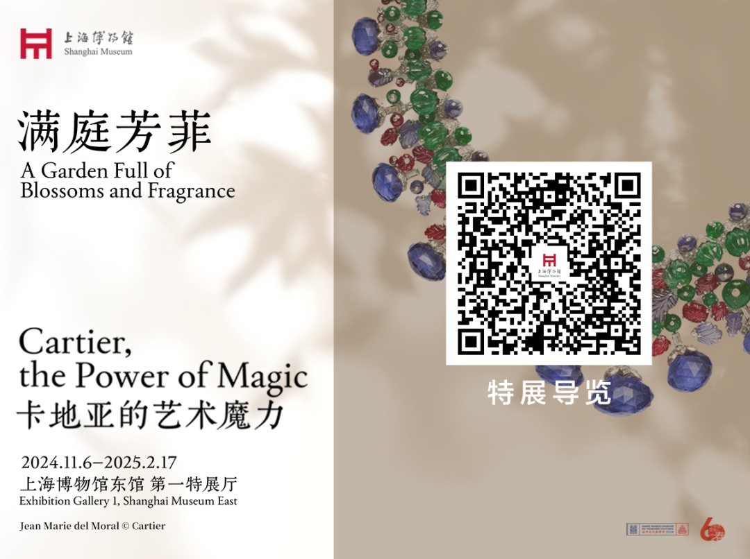 “满庭芳菲:卡地亚的艺术魔力”自2024年11月4日在上海博物馆东馆启幕以来,已陪伴观众们三个月有余。本次展览以“卡地亚的艺术魔力”为主轴,汇集332件艺术珍宝,不仅有来自卡地亚典藏202件珍品、96件档案文献,也有来自国内外等9家借展单位的34件中国文物。卡地亚典藏珍品与来自全球多家著名博物馆的珍贵文物相互映衬,延续着中西方文化与艺术的对话。