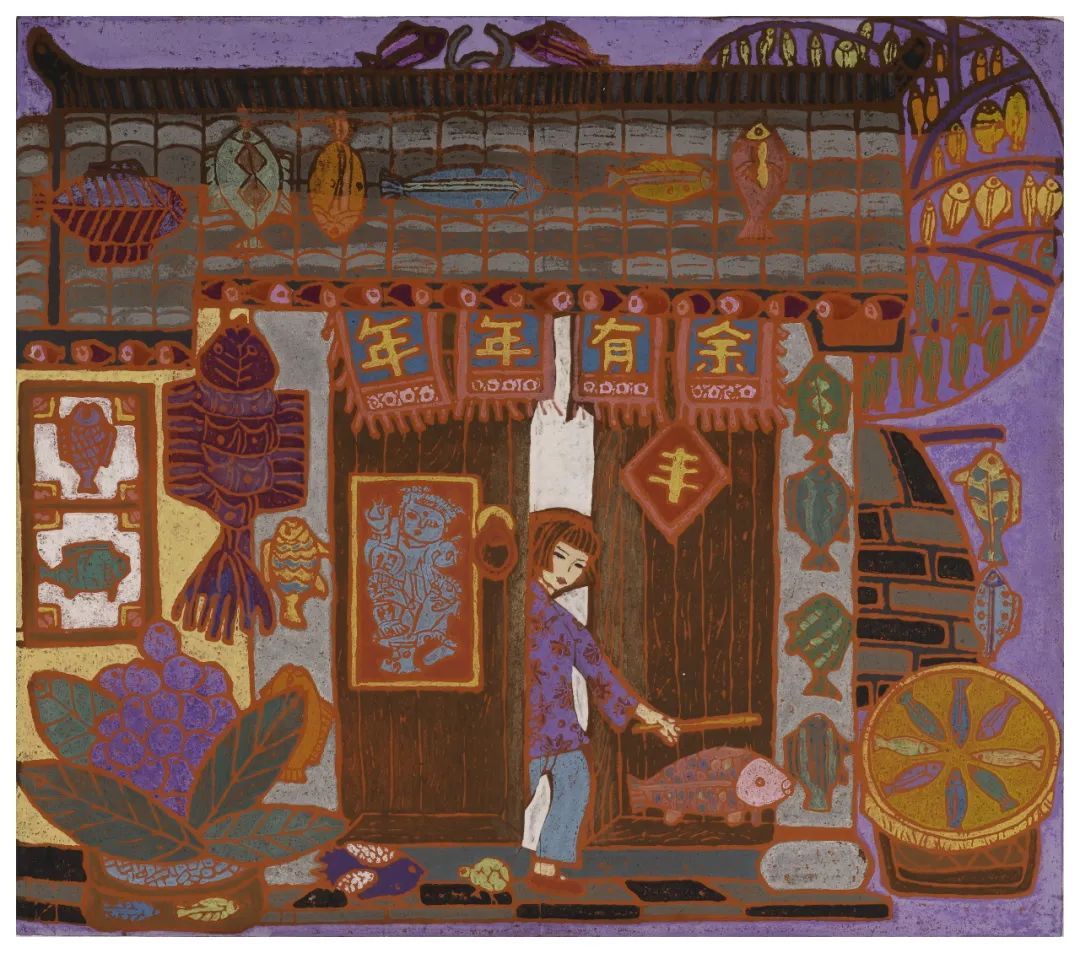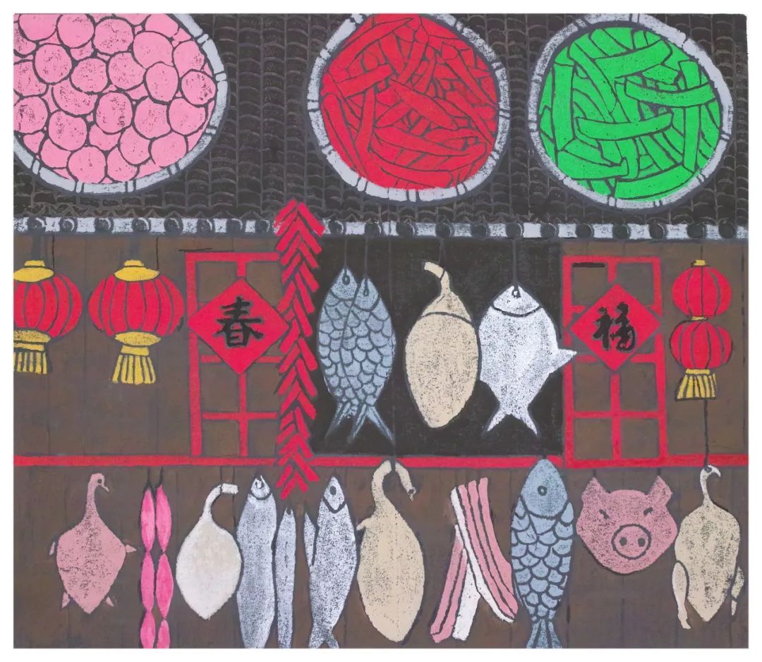 吹塑版画作品的灵感来源于对日常生活的发掘,考验的是敏锐捕捉细节创意的能力。从自然风光到民俗生活,从历史建筑到欢庆佳节都可以成为绘画主题。正值2025乙巳蛇年春节之际,让我们从吹塑版画中回顾过往的新春记忆。