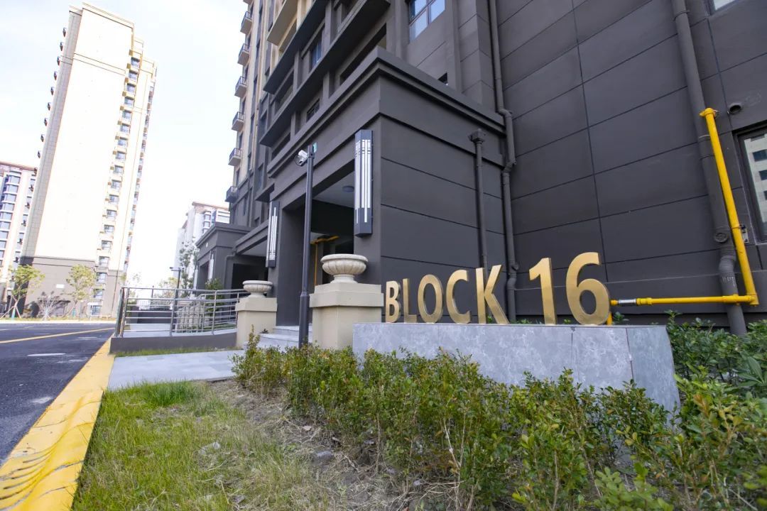 远远望去,整个小区采用简约的现代设计风格,外立面以米黄色等暖色为主色调,亮堂的玻璃透出明媚的阳光,显得更加挺拔利落,使得建筑主体与自然环境浑然一体。