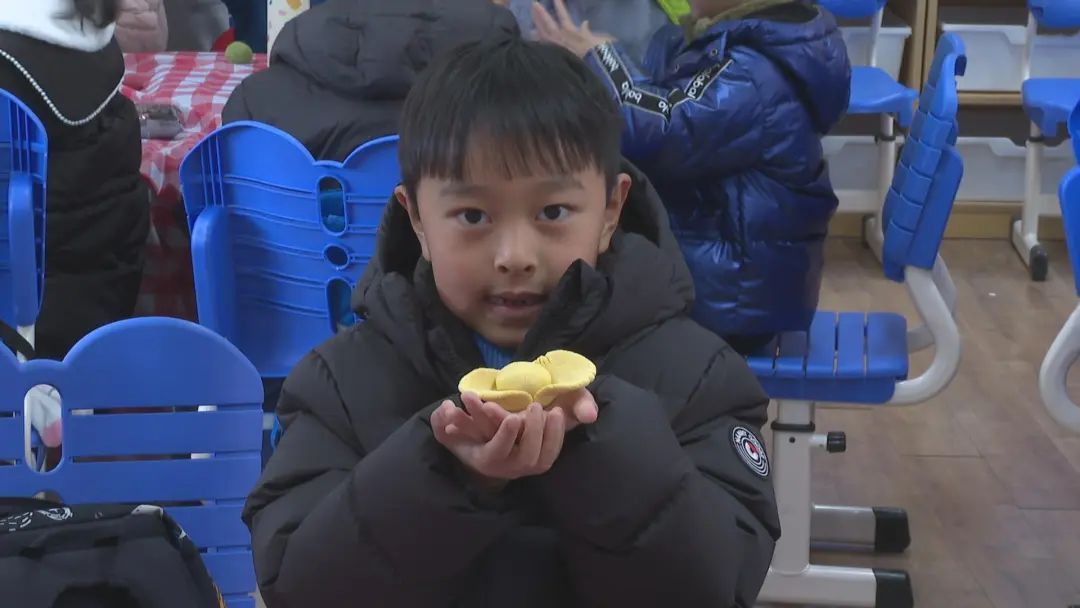 一颗颗汤圆承载着团圆祝福的期盼,更让传统文化在新生代心中生根发芽。“我喜欢金元宝,金元宝可以让我们发财!”一年级小朋友陈怡伊和马霄都做了金元宝汤圆,它是一个胖墩墩、金灿灿的元宝样子,有两个边,中间是拱起的圆球,十分可爱。两个小朋友都表示要把做好的“金元宝”送给妈妈,“我希望妈妈发财,祝福妈妈钱很多!”