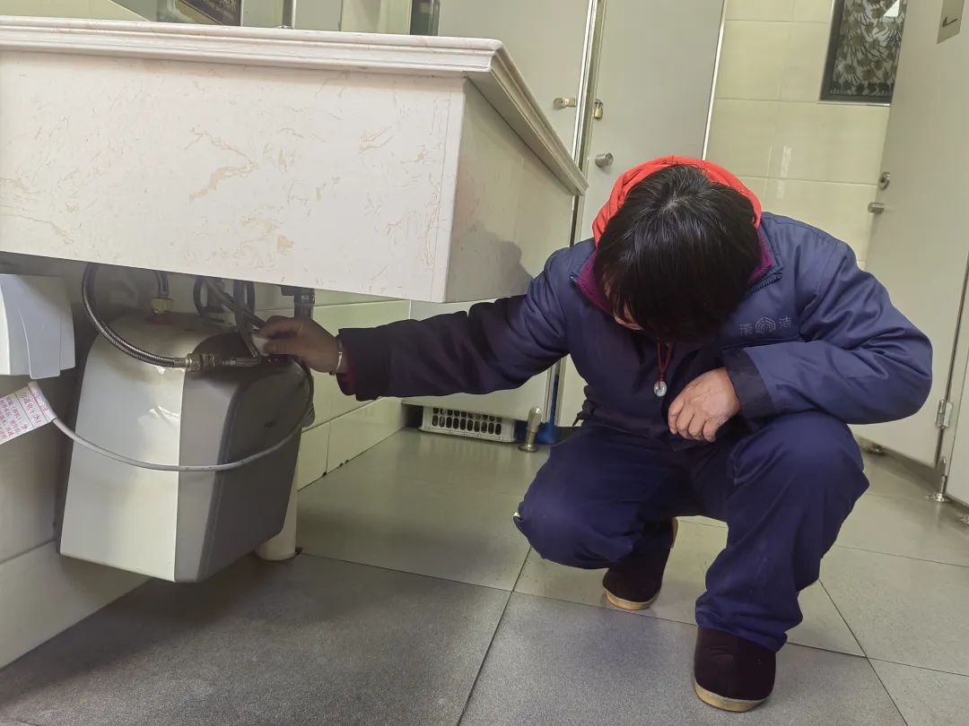 公厕门口铺设防滑垫、放置“小心地滑”警示牌;检修调试热水设备,保证为如厕群众供应温水净手;拖地作业后及时擦干水渍,保持公厕地面干爽。