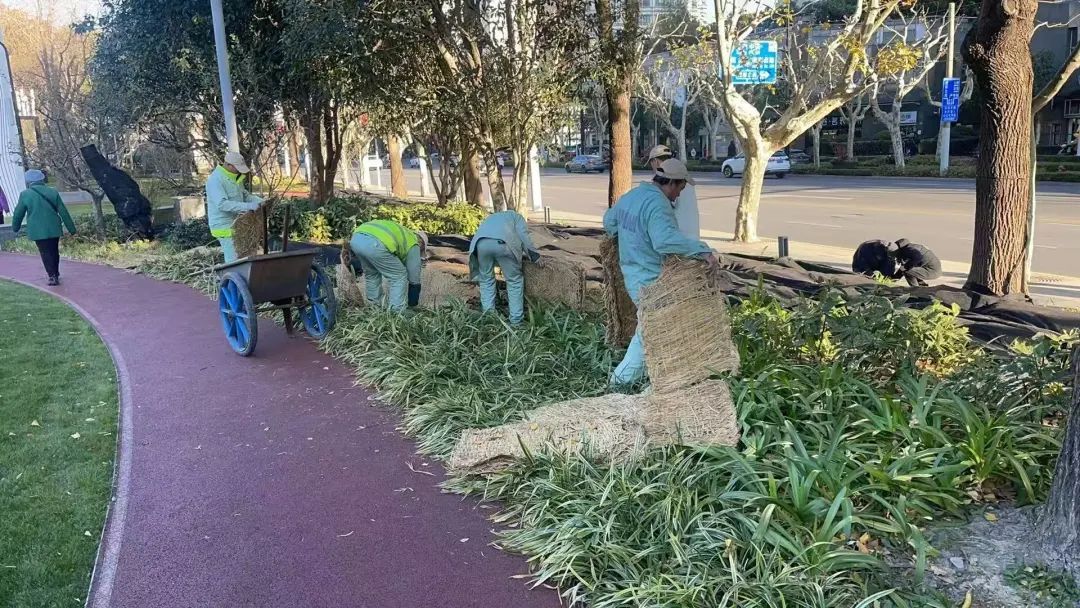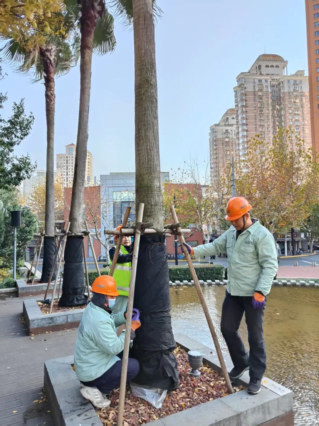 绿化板块及时采取植物防冻举措,为67棵不耐寒树木穿上“外衣”、给3600余株休眠宿根地被盖上“被子”;在负责运维保障的9座公园发布低温寒潮信息和游园安全提示。