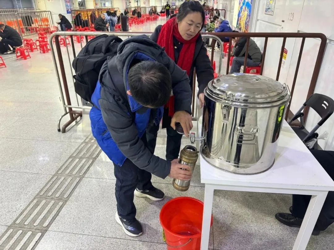 物业板块为铁路上海站地下广场暂留旅客提供免费热姜茶,帮助随身携带物品较多或行动不便的返程旅客搬抬行李,为有需要的旅客和出租车司机赠送暖宝宝,让群众一路温馨。