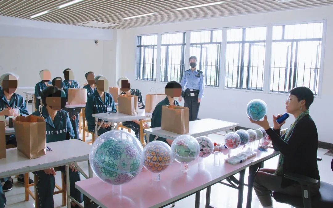 为推进上海监狱高质量发展,打造罪犯改造品牌,进一步探索非遗矫治项目“产学业”一体化路径,监狱引进非遗项目——海派绣球,邀请海派绣球非遗传承人来监为服刑罪犯授课、讲解制作技艺。