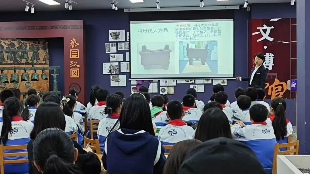 “各位来宾,欢迎来到文博馆”,“老师,我想把编钟作为‘茉莉花’这首民歌的乐器伴奏”。在文来实验,“我是非遗小传人”项目是孩子们最喜欢的校园活动之一:他们有的化身小小设计师,共同参与学校的文化空间打造;有的化身文化讲解员,讲述文物里的大中国;有的化身小小探究员,在“皮影+”文化场馆开展文化传承的项目化探究。