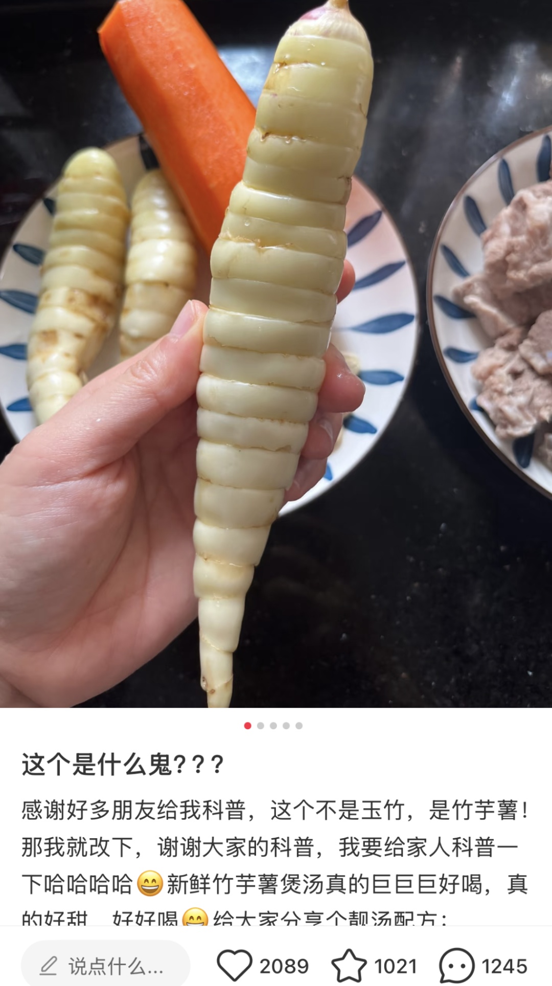 洗净的竹薯切块用来煮粥,或搭配排骨、鸡鸭、玉米、胡萝卜等煲汤,别有一番清香,不仅解腻,吃起来还有点脆爽。蒸米饭时将切块的竹薯一同蒸熟,口感软糯,香中微甜,也很是可口。
