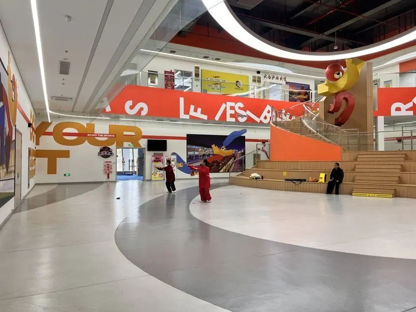 除了杨行体育馆二、三楼的各类室内体育场,一楼的公共活动区域也在严寒天气吸引了不少户外运动的市民“转战”室内。