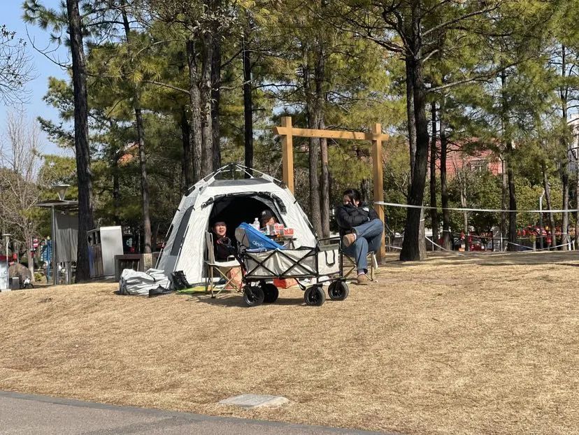 近日虽然上海的最低气温跌至零下,但是午后大风减弱,气温回升至零上,明媚的阳光也露出了头,不少市民在午饭后选择走出室内,找个避风的室外享受冬日暖阳。