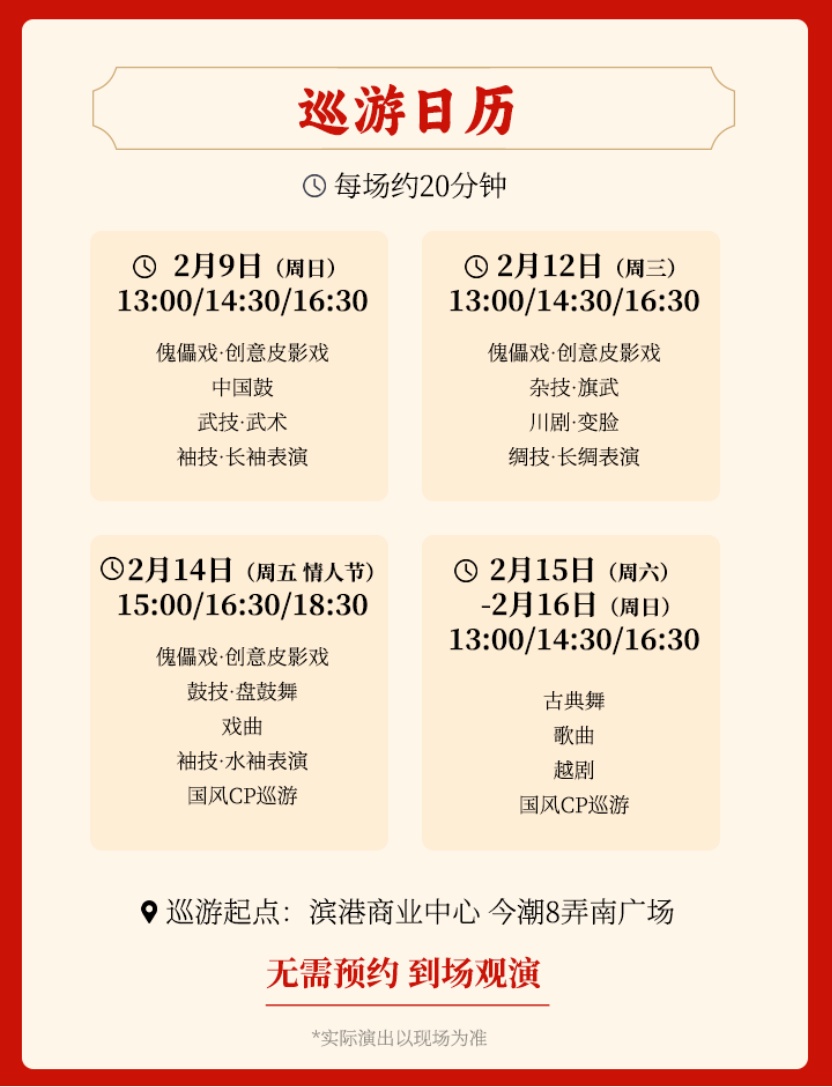 此外,“爵士江南”跨界系列音乐演出,以及汇集川剧变脸、水袖舞、盘鼓舞、戏曲、古典舞、越剧等多重国潮演艺类型的庙会巡游等活动也将陆续上线。