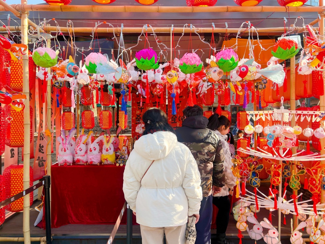 庙会中,花灯、古法香囊、马面裙与手作饰物等佳节好物目不暇接,络绎不绝的人群中有不少身着汉服的顾客身影,处处充满着古时庙会的热闹与欢庆。