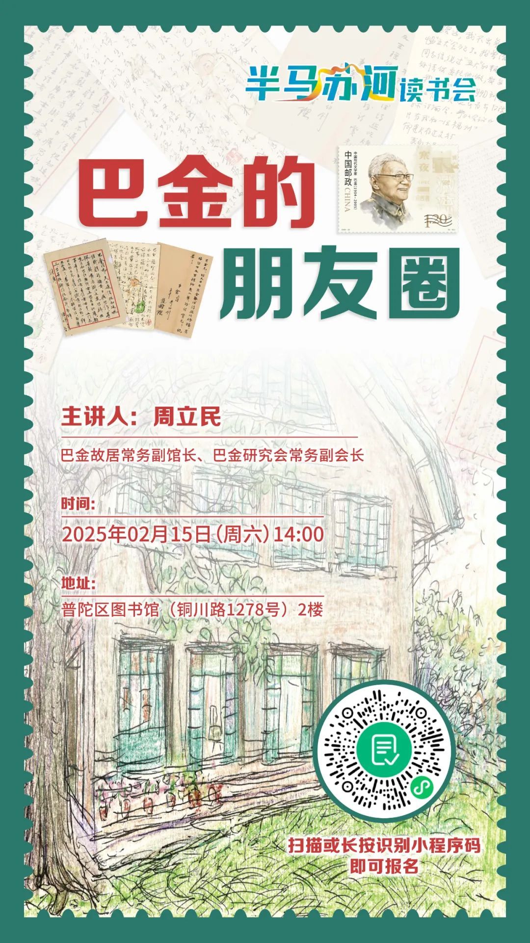 2月15日,策展人、巴金故居常务副馆长周立民将做客普陀区图书馆,与读者现场分享这些珍贵手札背后的纸短情长和历史背影……