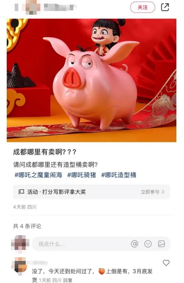 《哪吒2》相关的电影周边产品也火了起来,不少产品已经断货。