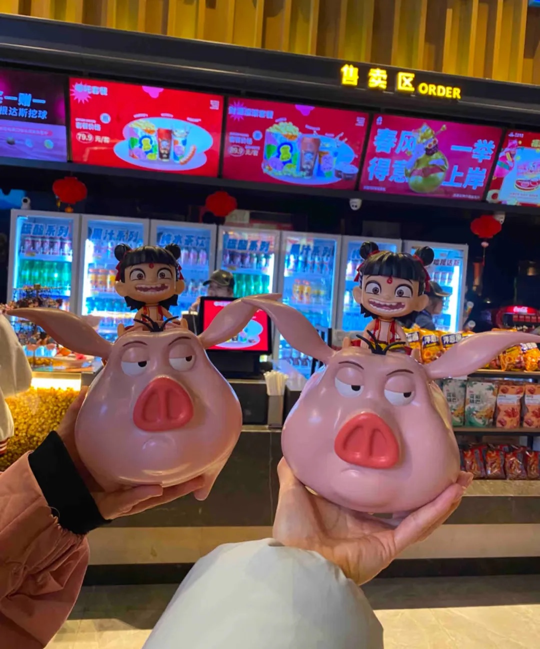 比如这个哪吒造型爆米花桶,在春节假期就已售罄,二手转手价格甚至翻倍。