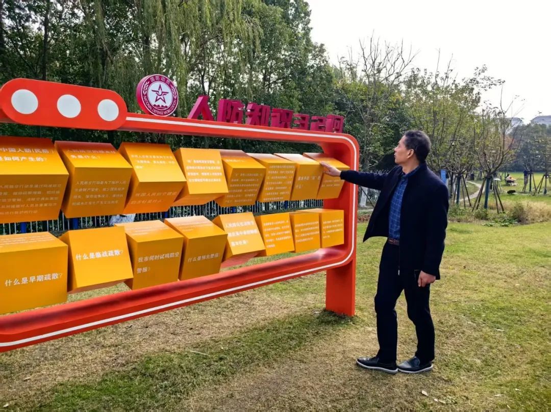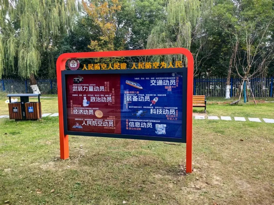 漫步于公园步道,涵盖武装力量动员、政治动员、经济动员、人民防空动员等相关知识的科普宣传栏,讲解“鸣走藏消”人民防空知识、四种警报器的花草牌等特色装置于园内相互串联,各类国防动员、人民防空科普宣传设施与公园绿化造景相互结合,使居民在日常休闲中汲取相关知识,增强国防观念。