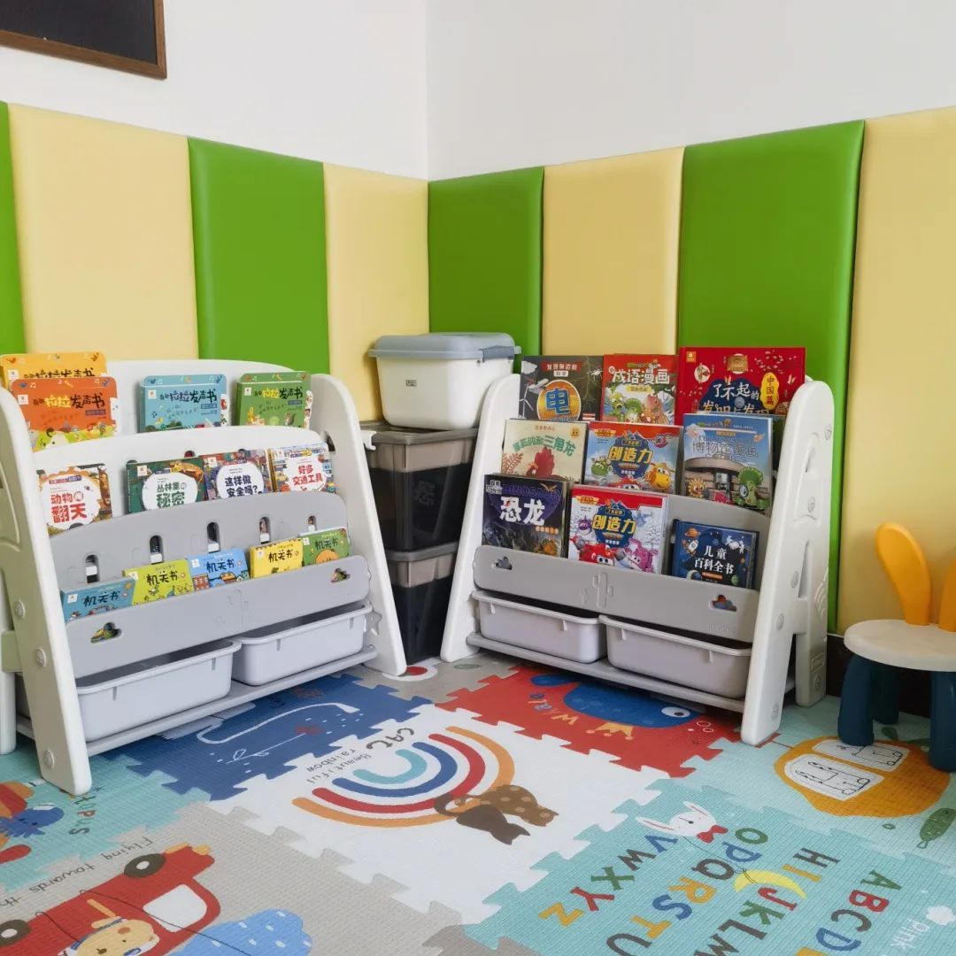 此外,儿童之家阅读环境也经过精心布置,一方面考虑到孩子们阅读的舒适性,选择了高度适中的书架与桌椅;另一方面,安全性、整洁度也是改造的重中之重,全新铺设的地垫让孩子们可以在这里安全愉快地享受阅读的乐趣。