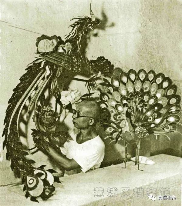 何克明在制作《百鸟朝凤》中的孔雀(来源:黄浦区档案馆)
