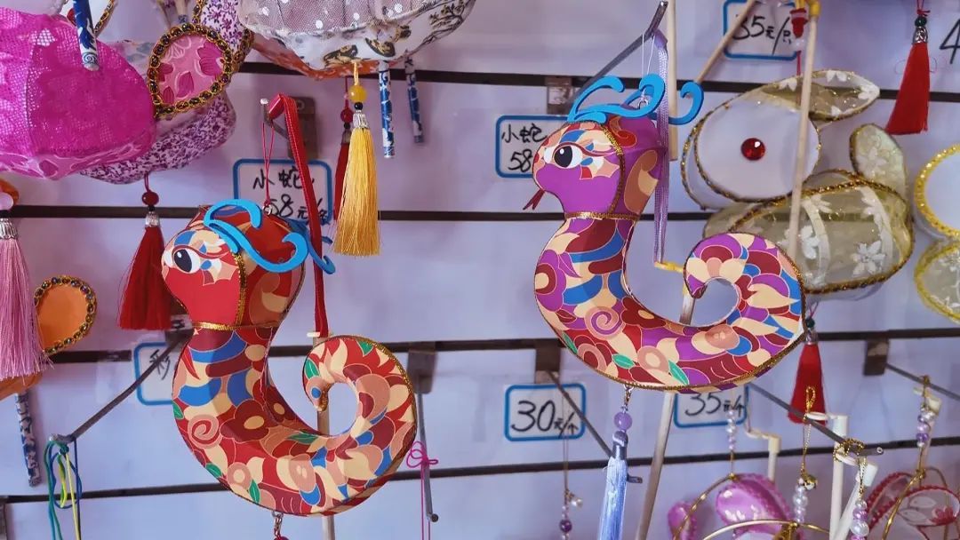 “我看到这些蛇灯觉得非常好看,布的颜色和图案都很漂亮。今年正好是蛇年,所以觉得特别有意义。我打算买两个回去,给小朋友们玩。”市民张阿姨一连给小孙子选了三四个灯。