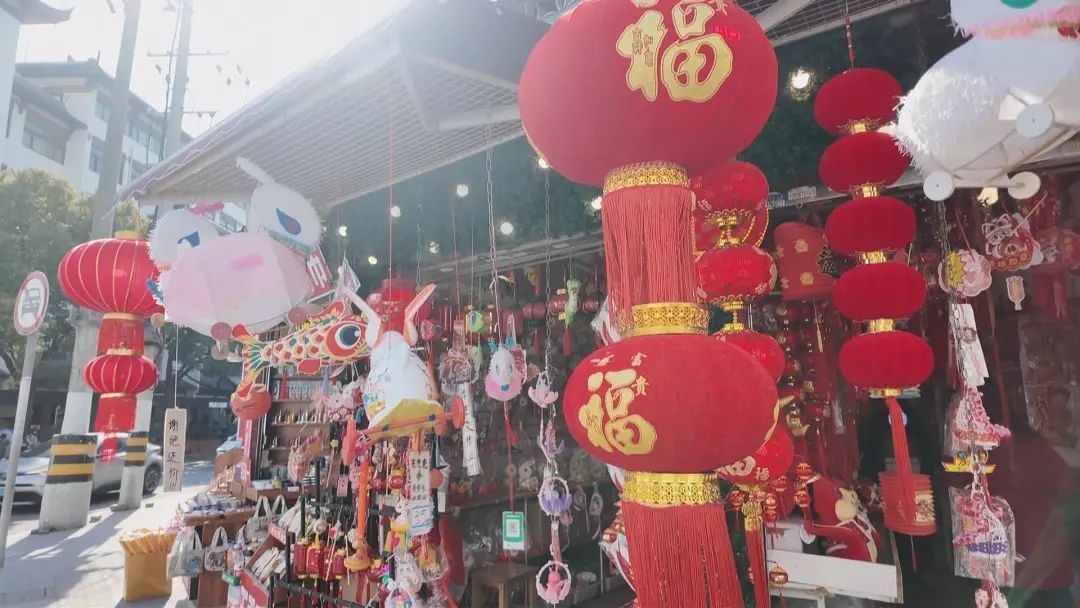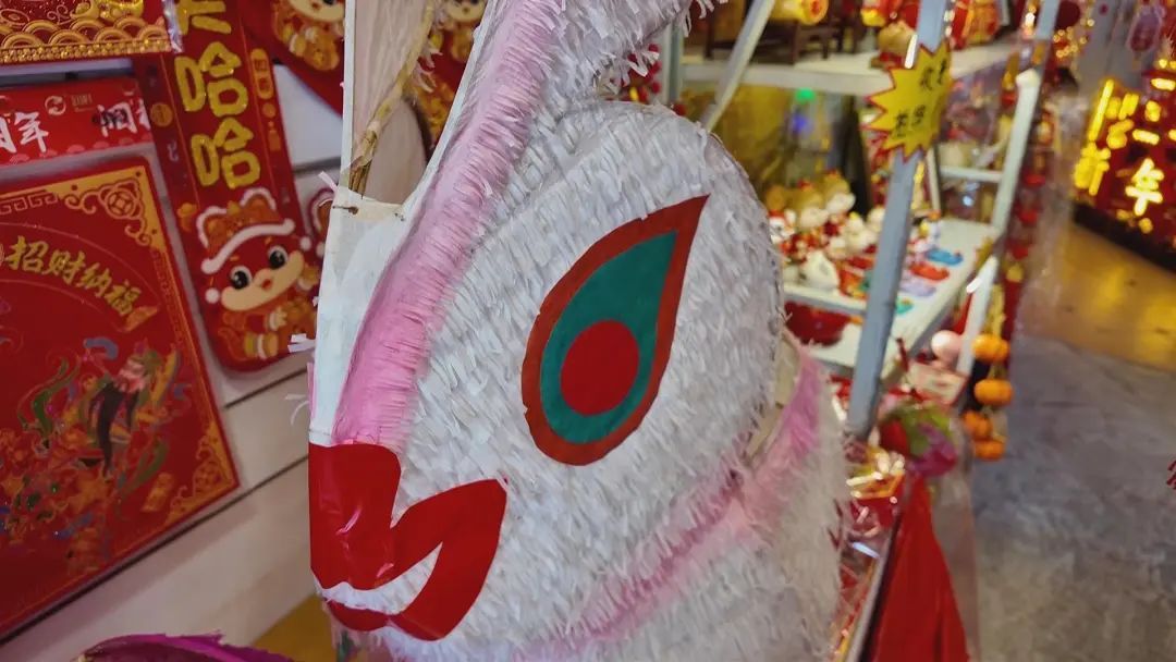 在豫园小商品市场内,众多小店铺内挂满了琳琅满目的兔子灯。今年恰逢生肖蛇年,因此一些融合了蛇元素的新颖兔子灯设计尤为抢眼。这些手工蛇灯采用绸缎布料精心制作,花色斑斓,端庄大气,无论大小型号都栩栩如生,细节处理得十分精致。许多市民纷纷前来选购,希望将这些既好玩又具有传统文化韵味的兔子灯送给家中的孩子。