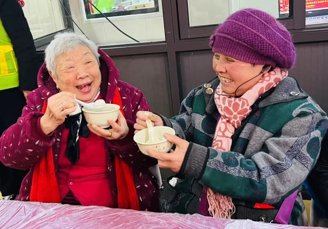 热气腾腾的汤圆出锅后,志愿者们将一碗碗香甜软糯的汤圆端到老人面前。老人们一边吃着汤圆,一边笑得合不拢嘴,脸上满是幸福和满足。