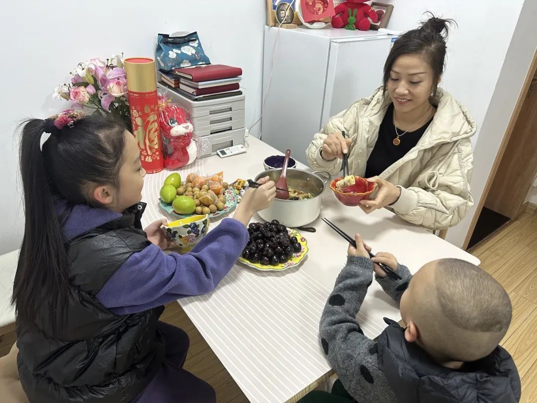 一走进彩虹湾公租房某室,就看到来自东北的“85后”夫妇董女士和孙先生正忙着张罗年菜——全家福。随着食材逐一加入,很快锅子就满当当、热腾腾,家里的年味也随着年菜飘出的香气变得更浓了。